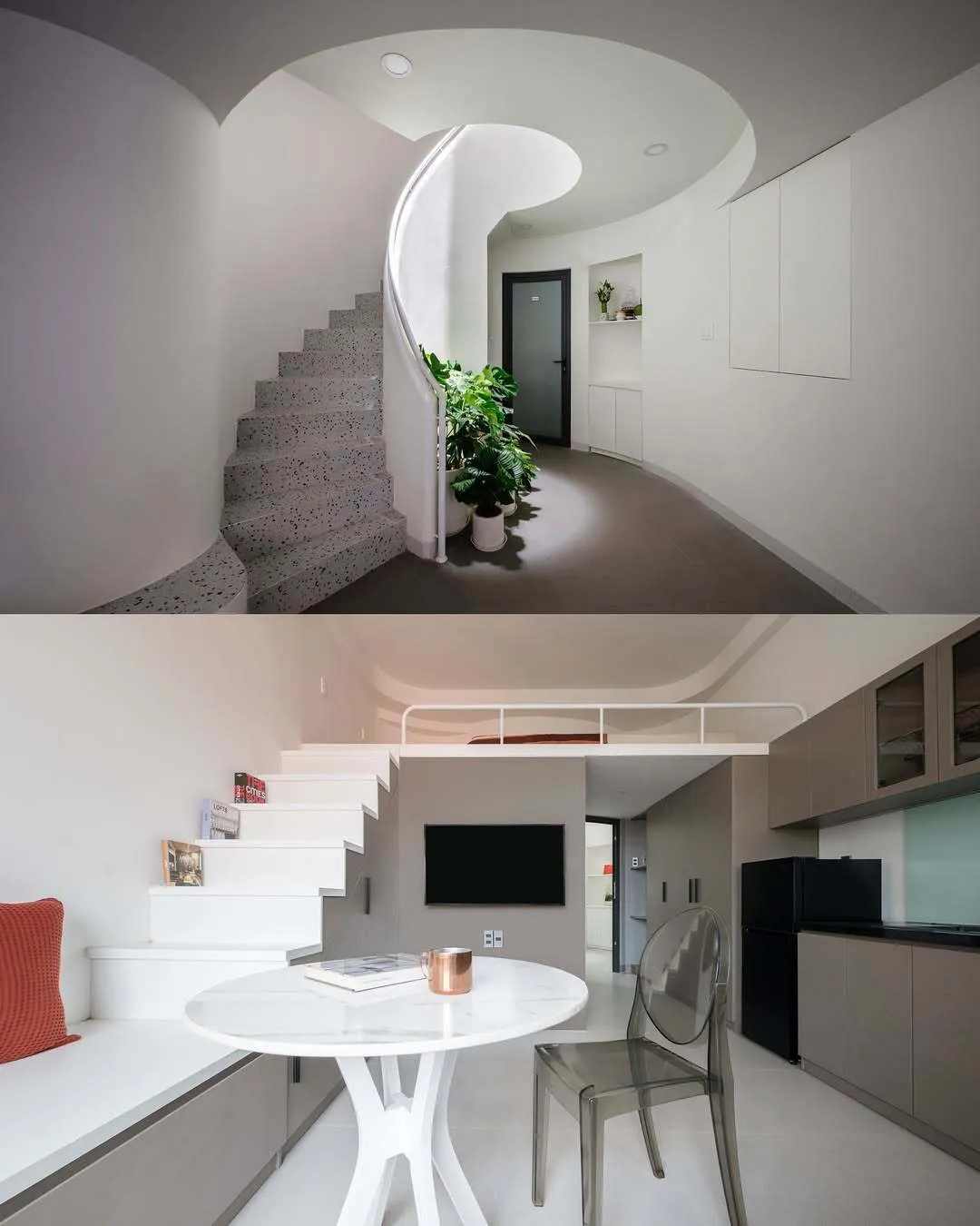 در این فضای نسبتاً کوچک، شش سوئیت به سبک لافت و دو استودیو استاندارد به شکلی منظم چیده شده‌اند. برای به حداکثر رساندن بهره‌وری فضایی از ارتفاع ۳.۵ متری سقف تا کف، یک فضای لافت کوچک در بالای ورودی و حمام هر سوئیت اجاره‌ای تعبیه شده است تا هم حس جادار بودن و هم دنج بودن را به فضای اصلی زندگی منتقل کند.